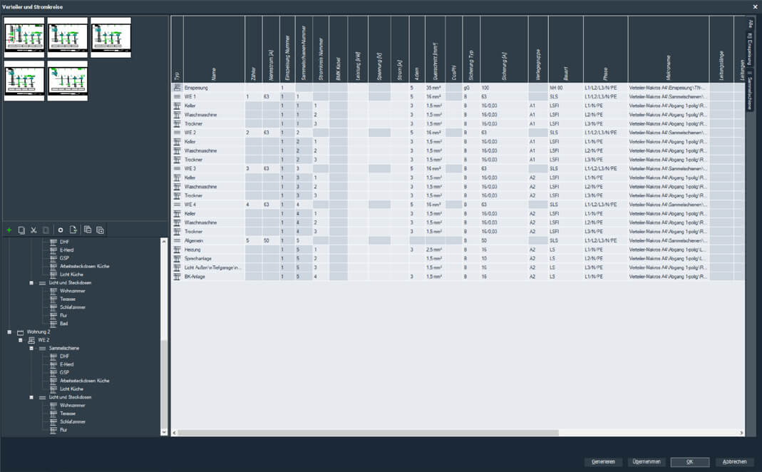 Die Planung der Energieverteiler kann sehr zeiteffektiv über die Stromkreisverwaltung mit dem Schaltplangenerator erfolgen.
