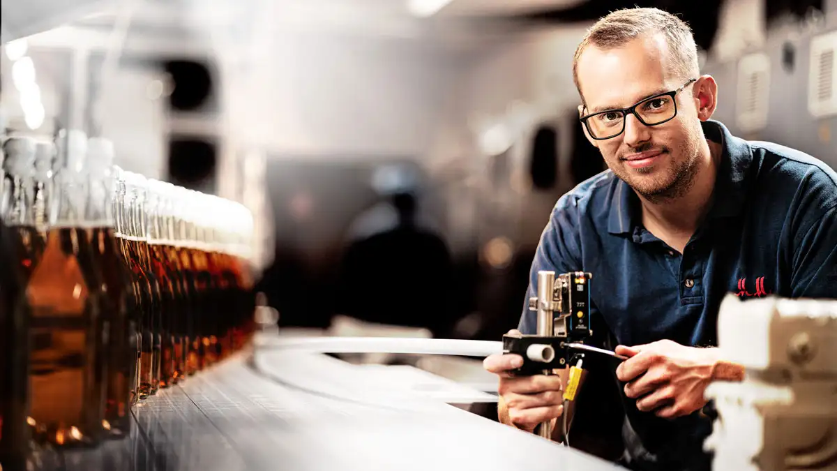 The filling lines operate nearly round-the-clock in three shifts – precisely, automatically and under tight timelines. When a component fails, the line stops. “Every minute counts,” says Jan Wiemann, Workshop Manager with over 20 years at Rotkäppchen. “Our goal is clear: get the line running again as quickly as possible.”